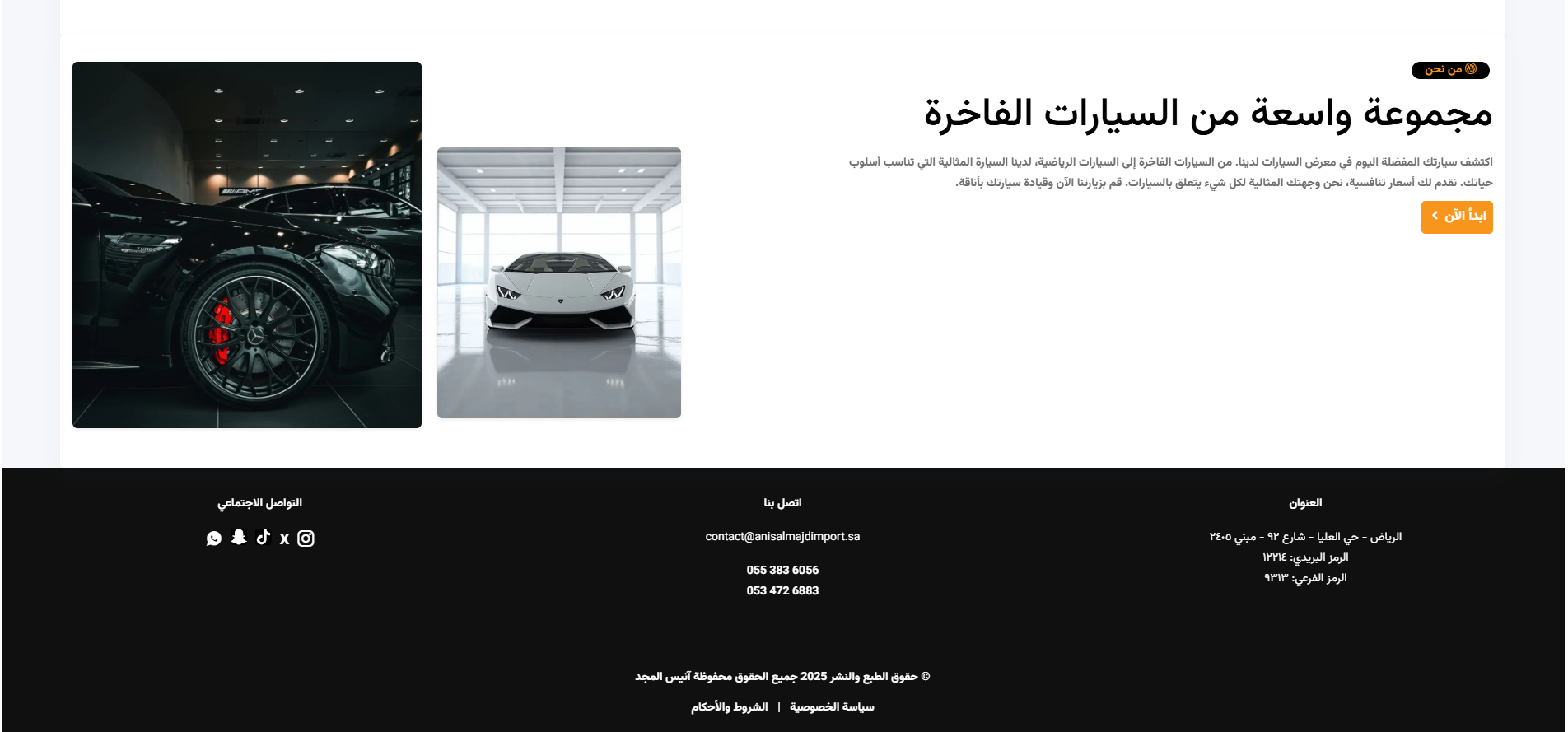 قمنا بتصميم وتطوير الموقع الإلكتروني لـ أنيس المجد ليكون منصة رقمية متكاملة لعرض وبيع السيارات الجديدة والمستعملة داخل المملكة العربية السعودية، مع التركيز على إبراز تنوّع المعروضات وسهولة تصفّحها.