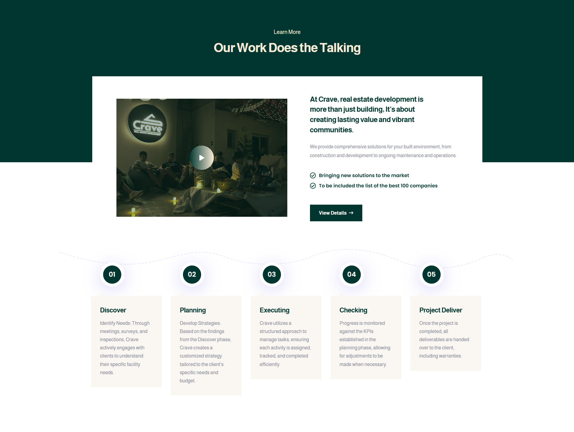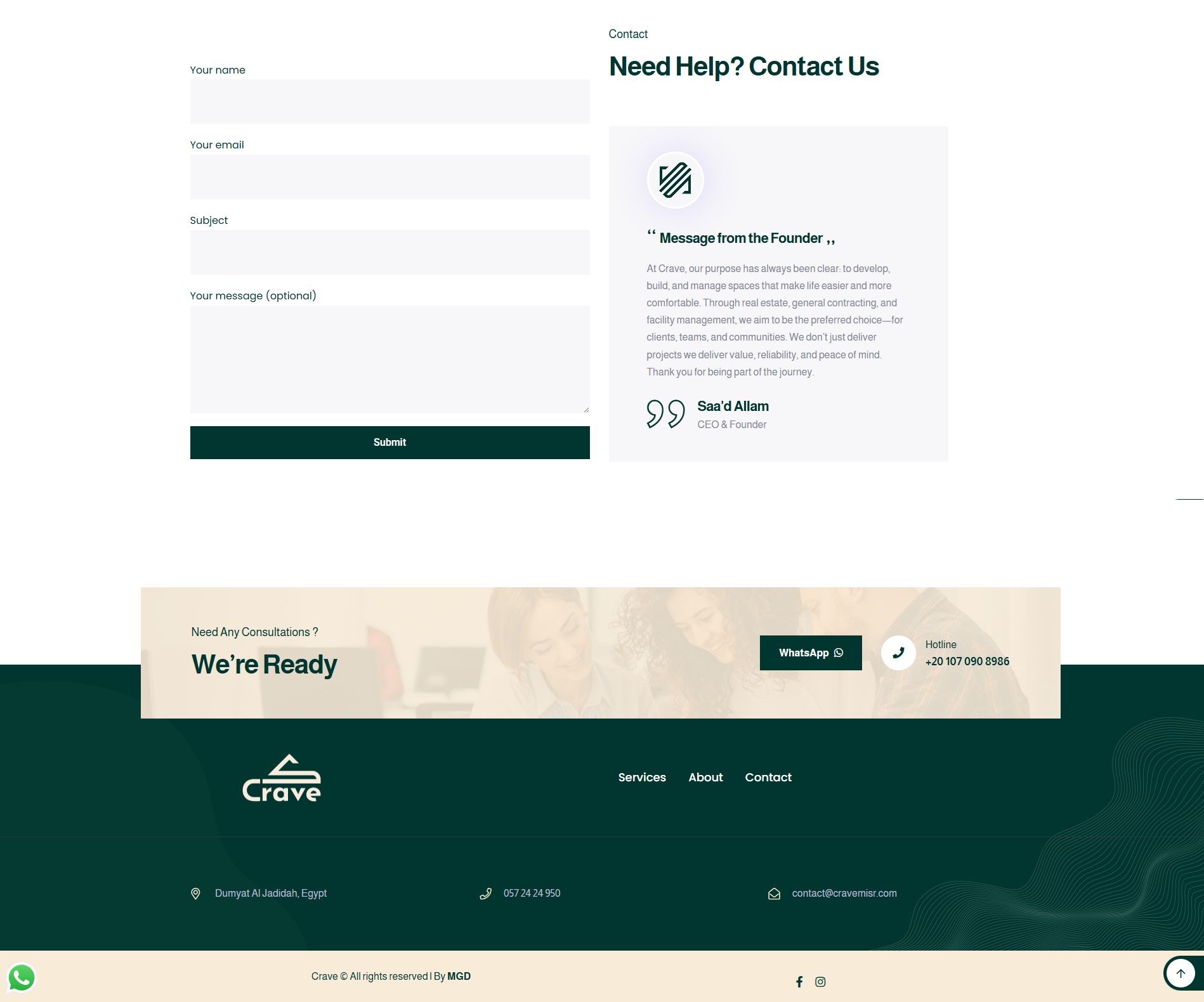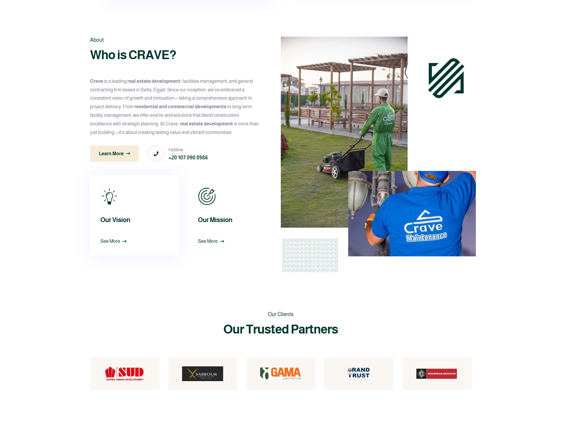 جاء الموقع النهائي عمليًا ومرنًا، يعكس جودة مشاريع Crave ويقوّي حضورها الرقمي، مع تقديم تجربة رقمية موثوقة واحترافية للعملاء والمستثمرين المحتملين.
