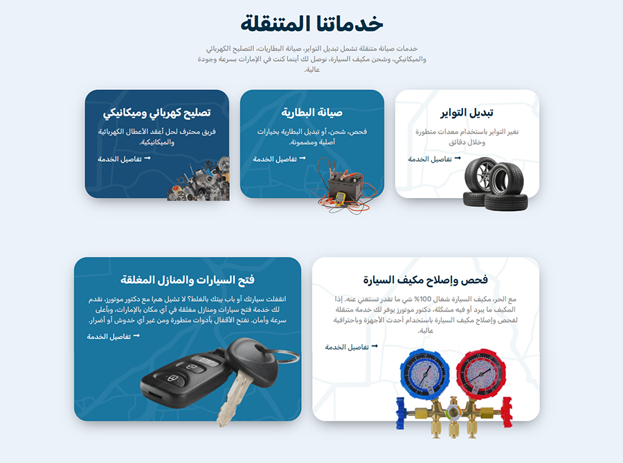 جاء الموقع النهائي عمليًا ومرنًا، يعزّز ثقة المستخدم في الخدمة، ويقوّي الحضور الرقمي للعلامة، ويعكس احترافية الشركة واعتماديتها في مجال صيانة السيارات المتنقلة.