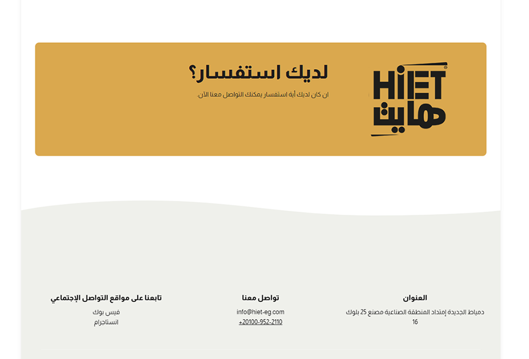 جاء الموقع النهائي احترافيًا ومرنًا، يعكس جودة منتجات HiET ويقوّي حضورها الرقمي، ويقدّم تجربة رقمية واضحة وموثوقة للمستهلكين والعملاء المحتملين.